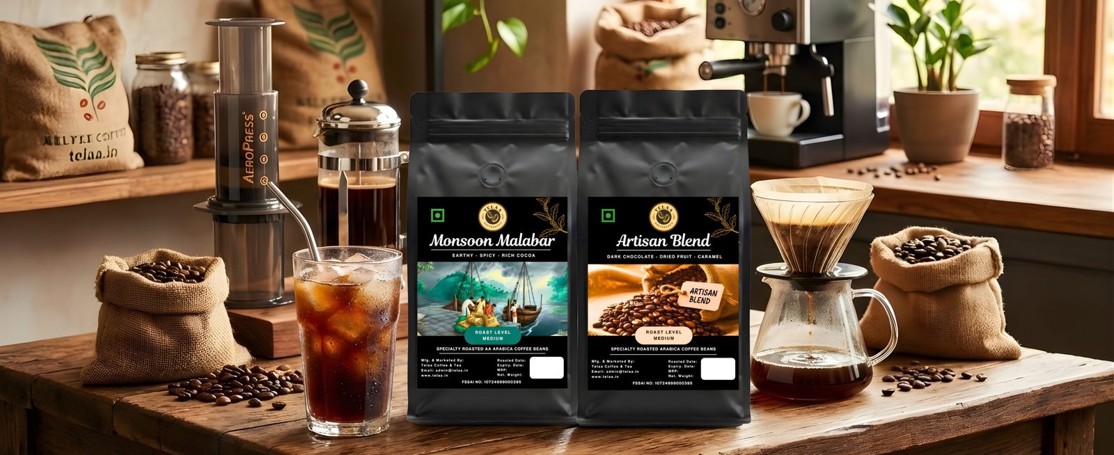 Telaa Monsoon Malabar Coffee Capsules | Indian Specialty Monsoon Aged Coffee | Aluminium Nespresso Original Line Compatible Pods