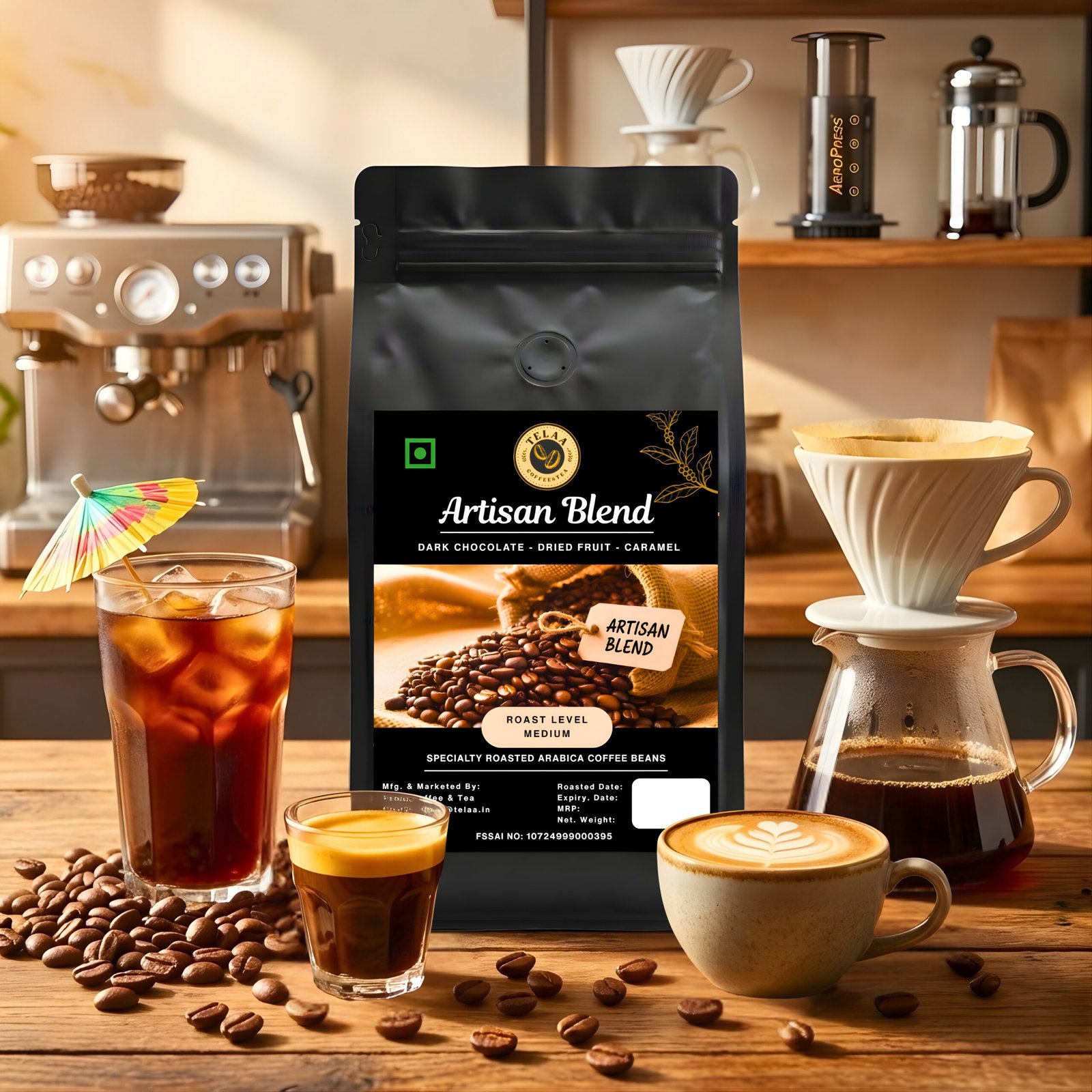 Artisan Blend is Telaa’s signature all-rounder—crafted for consistency, versatility, and a perfectly balanced cup across every brewing method. Designed for both professionals and everyday coffee lovers, this blend brings together high-quality Arabica beans to deliver a rich, smooth, and dependable coffee experience.