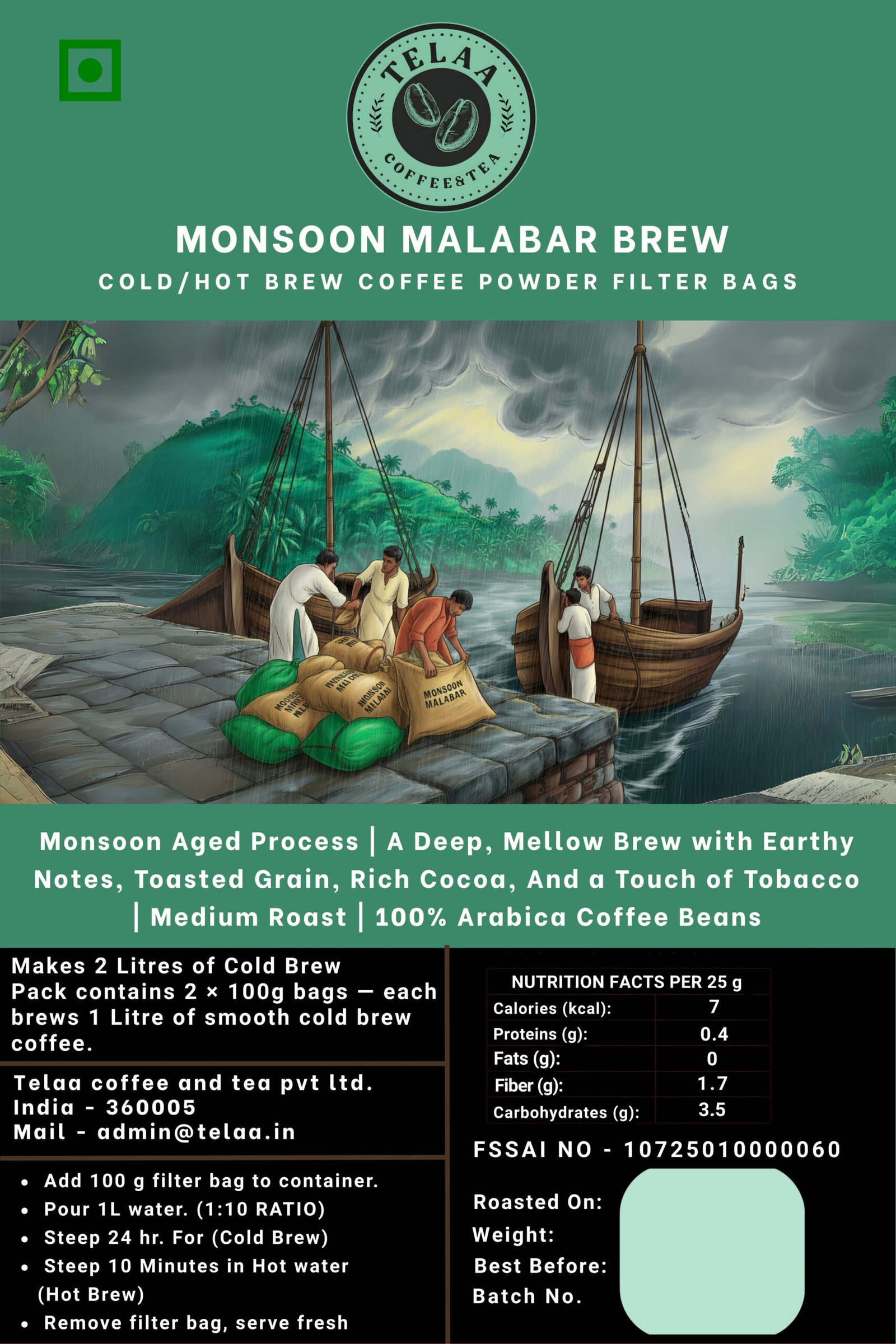 wow, This guys have best Monsson Malabar and also they will grind fresh to your size as per order. I received very fresh roast. also can buy brew bag if you don’t have any equipment to brew. 5 star from heart touching coffee. Love you Telaa.