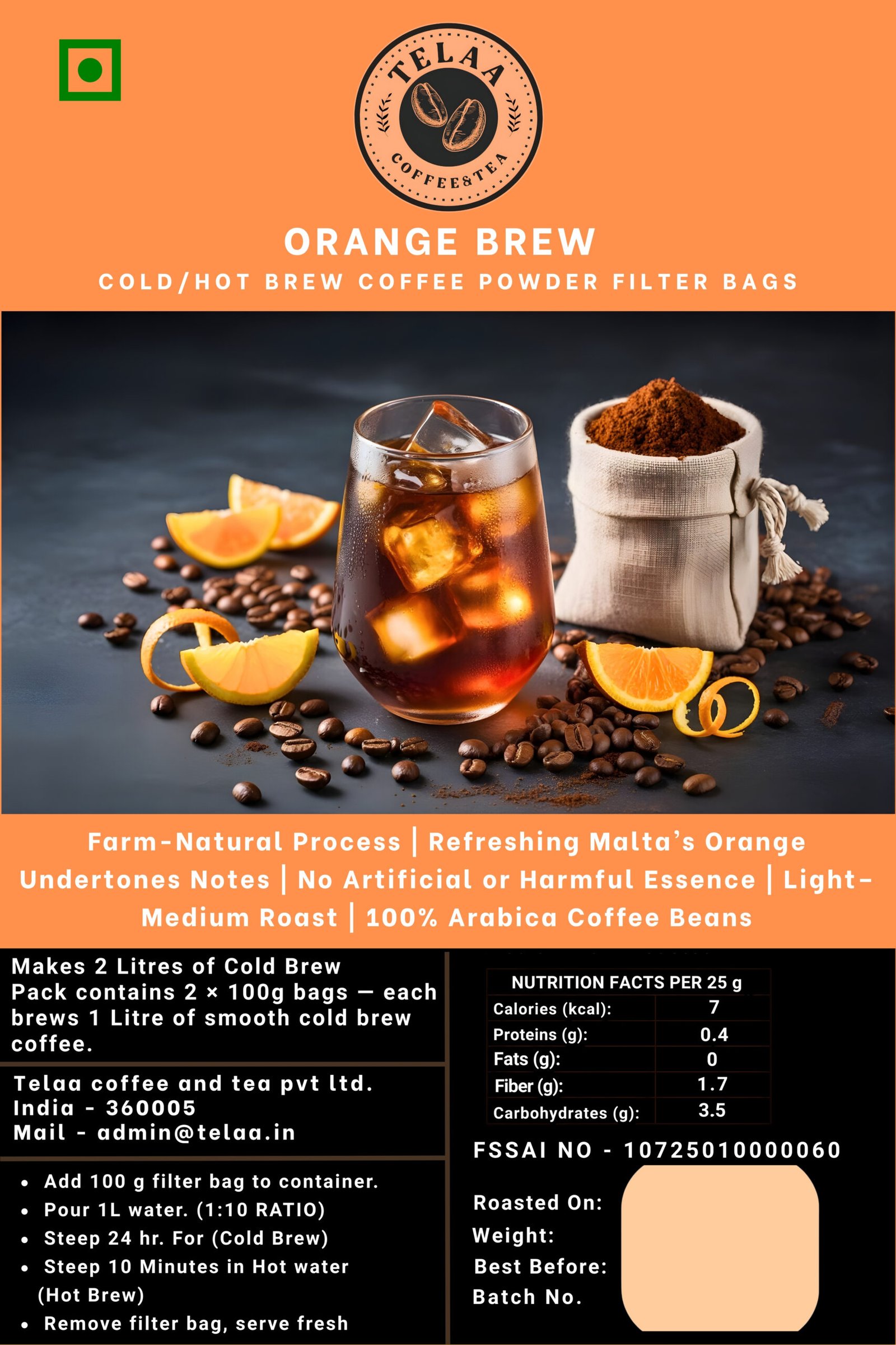 Coffee, Cold Brew Ready to Pour Bags (Specialty), Roasted Coffee Powder/Cold Brew SolutionOrange Coffee — 200g Ground or Cold/Hot Brew Bag | V60, Press, Espresso