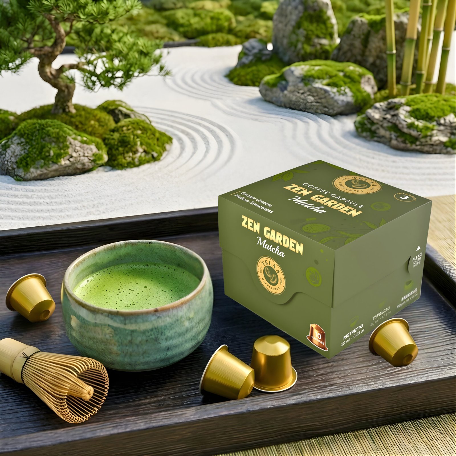 Zen Garden – Premium Japanese Matcha Tea Capsules, A Grade Quality, Nespresso Compatible, Intensity 3/10